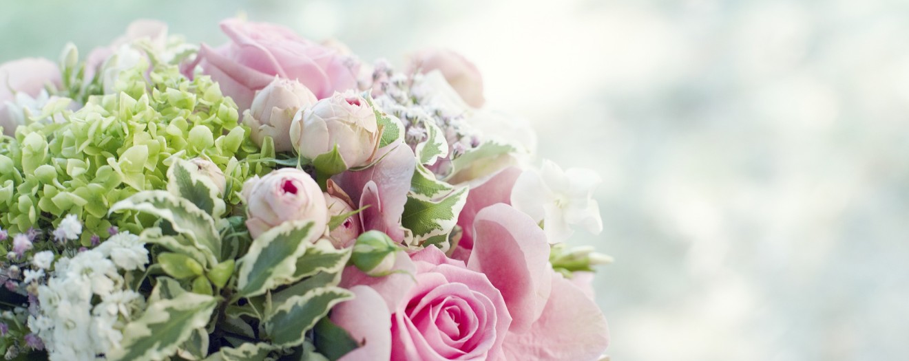Viele Brautpaare wählen eine einheitliche Blumendekoration. Alles, was aus Blumen besteht, wird im komplett selben Stil gemacht. Sprich, es werden dieselben Blumen und gleiche Farben verwendet. Dies verleitet der ganzen Veranstaltung ein einheitliches Gefühl und fügt alle Puzzleteile zusammen. Beliebt war in der letzten Saison die Farbkombination rosa-weiß-grün, die sich perfekt in eine Vintage-Dekoration einbinden ließ. Kleine weiße und rosa Röschen, Schleierkraut, Sukkulenten sind nur wenige Beispiele der vielen Möglichkeiten. Weitere beliebte Hochzeitsblumen sind neben klassischen Rosen auch Orchideen, Callas, Lilien, Pfingstrosen und Gerbera. Auch Hortensien und Chrysanthemen finden in der Blumendekoration Verwendung. Seit der royalen Hochzeit von Kate und William sind auch Brautsträußchen aus Maiglöckchen sehr angesagt. Wer bunte, auf den ersten Blick etwas chaotische, außergewöhnliche Blumensträuße mag, kann den Leitfaden durch Schleifen um die Blumen schaffen.