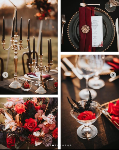 Black Wedding beinhaltet oft rote Elemente: Rot und schwarz sind nicht umsonst die Farben, die für Leidenschaft und Romantik stehen. Die roten Colorkeys finden sich viel in Kleidung und in der Hochzeitsdekoration wieder - anbei zeigen wir euch präsente Beispiele für diesen Look.