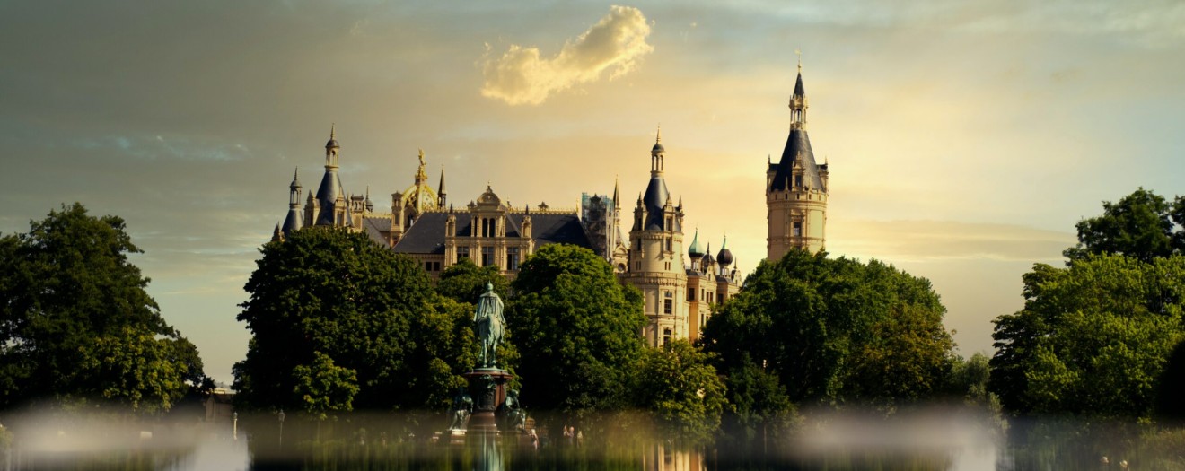 Das Schweriner Schloss steht auf einer über eine Brücke begehbaren Insel im Herzen von Schwerin mit Blick auf den Schweriner See. Einfach märchenhaft!