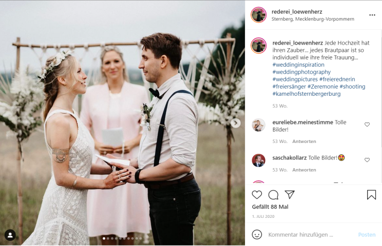 Die Hochzeitsplanung Dähn wird liebevoll von Anne-Katrin, einer vierfachen Mutter und ausgebildeten Hochzeitsplanerin, geführt. Die Hochzeitsplanerin beschränkt sich nicht nur auf die Region rund um Rostock, wo sich das Unternehmen befindet, und ist eine top Ansprechpartnerin für ein liebevoll geplantes Fest.