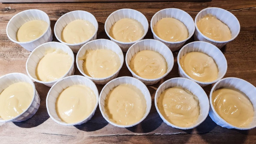 So sehen rohe, fertig befüllte Cupcakeförmchen aus: