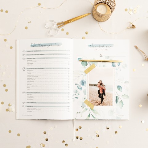 Der Hochzeitsplaner enthält alle wichtigen Punkte rund um euren schönsten Tag. Dabei werden hilfreiche Erklärungstexte durch Seiten zum Ausfüllen ergänzt. So könnt ihr euer Budget genauso eintragen wie eure Gästeliste, euren Hochzeitsstil, Kontaktdaten von Dienstleistern und einiges mehr. Die meisten Hochzeitsplaner enthalten neben dem Planungsteil auch Seiten, die für euch als Erinnerung gedacht sind an die schöne Zeit des Verlobtseins. Ihr könnt Bilder einkleben, Gedanken aufschreiben und diese Seiten so kreativ befüllen, wie ihr möchtet. Euer Hochzeitsplaner begleitet euch also sowohl auf sachlicher als auch auf emotionaler Ebene auf dem Weg zu eurer Traumhochzeit. – Ein perfekter Partner für dich und deinen Verlobten in der aufregenden Planungszeit!